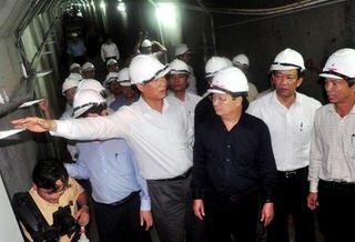 Bộ trưởng thị sát trong thân đập thủy điện Sông Tranh 2