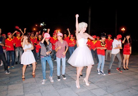 Gần đây, VietJet Air tiếp tục khai trương đường bay Tp.HCM - Vinh với sự xuất hiện của "Marilyn Monroe" cùng điệu nhảy Gangnam Style. Tại quảng trường thành phố Ngọc Quyên hóa thân thành "Marilyn Monroe" cùng vũ đoàn và người dân cuồng nhiệt nhảy điệu Gangnam Style. Với cặp môi đỏ, mái tóc xù cùng bộ váy trắng người mẫu Ngọc Quyên trông không khác ǵ Marilyn Monroe - ngôi sao điện ảnh Hollywood nổi tiếng nhất thế kỉ 20.