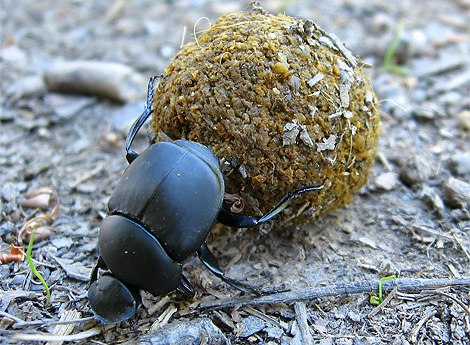 Những ấu trùng bọ hung màu trắng từ trứng nở ra, dựa vào ăn phân mà lớn lên. Sau khi lớn, chúng lại làm hệt như bố mẹ, tiếp tục đi lăn vần viên phân.