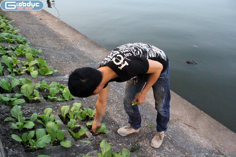 Rau sạch của người dân thủ đô được trồng ở bờ kè ven hồ thế này