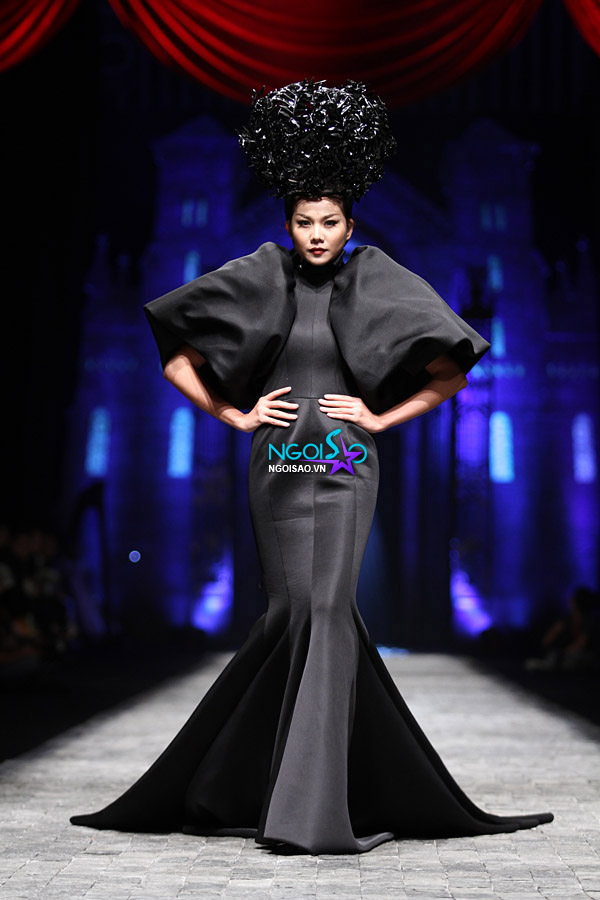 Vedette Thanh Hằng tự tin catwalk với chiếc mũ sắt 3kg trên đầu