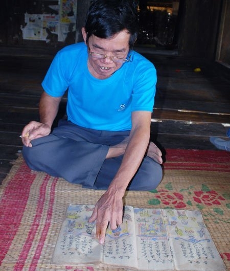 Chính v́ thế, chỉ khi có người đến nhờ làm lễ hoặc làm bùa, ông mới mang sách ra. C̣n b́nh thường, ông cất sách trong một chiếc rương gỗ lim có khóa sắt chắc chắn kê ngay ở đầu giường ngủ. Để đọc và hiểu được nội dung những cuốn sách cổ này, ông Đồng đă phải bỏ ra 20 năm cần mẫn theo cha học tập. Nói khó măi, ông Đồng mới cho chúng tôi được cầm những cuốn sách quư để xem và nhất quyết không giải nghĩa nội dung trong đó v́ đấy là "bí mật của tổ tiên".