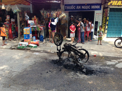 Giận vợ lôi xe ra đường đốt