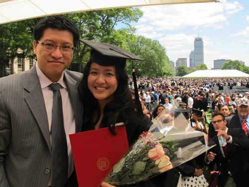 Sơn bên cạnh Trang trong ngày cô tốt nghiệp tại MIT - Ảnh: do nhân vật cung cấp
