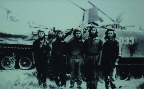 Chiến sĩ Đội 33 và số xe tăng - xe bọc thép chiến lợi phẩm.