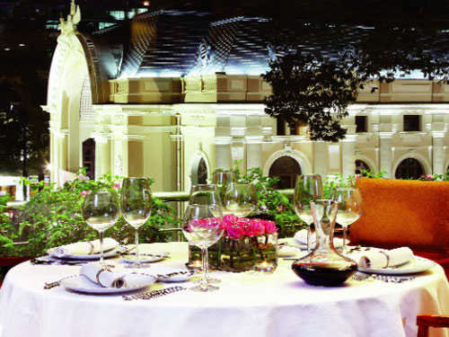 Tầm nhìn từ bàn ăn cũng rất được chú trọng. Trong ảnh: một góc nhà hàng Reflections của khách sạn Caravelle (TP.HCM).