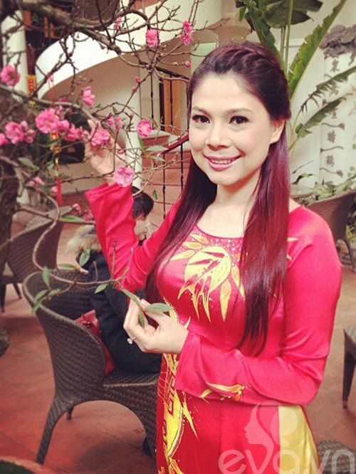 Thanh Thảo dịu dàng với áo dài đỏ trong ngày Tết