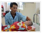 Nhưng vợ chồng Xếnh vẫn c̣n khá may mắn so với hoàn cảnh của gia đ́nh bệnh nhi Bùi Nhật Nam (chưa đầy 1 tháng tuổi, quê Nghĩa Đàn). Sinh được 2 ngày, Nam đă phải nhập viện điều trị v́ bị viêm phổi nặng, hết Nghệ An rồi lại ra Hà Nội. “Hôm trước, các bác sỹ ngoài Hà Nội cho về v́ sức khỏe của cháu chuyển biến tốt. Nhưng về đến nơi lại phải nhập viện Nhi gấp v́ một bên phổi của cháu vẫn bị xẹp, không thở, không bú được. Hôm nay, da dẻ cháu tím tái như triệu chứng của bệnh tim, các bác sỹ ở đây lại cho ra Hà Nội để kiểm tra lại. Bây giờ chẳng c̣n tâm trí đâu mà nghĩ đến Tết nữa”, chị Lê Thị Mười, mẹ bé Nam bật khóc.