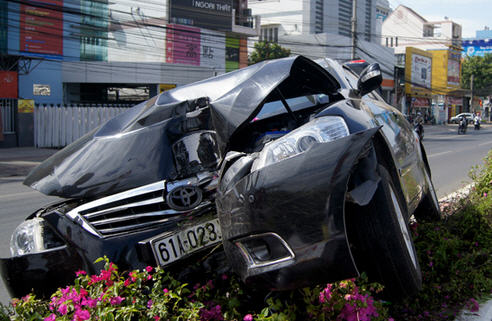 Camry bẹp dúm phơi ḿnh trên dải phân cách