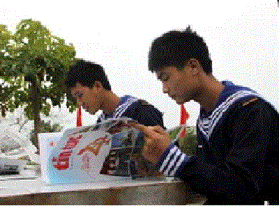 | Báo Tết - món ăn tinh thần của lính đảo nơi đảo xa. Ảnh: Tuấn Anh/TTXVN. |
