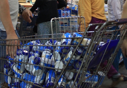 Chúng tôi ngồi uống nước ở cổng ra vào siêu thị mới thấy số lượng hàng tuồn ra ngoài không hề nhỏ. Theo quan sát của chúng tôi, hai mặt hàng được “đánh” nhiều nhất là Sữa Ensure và bia Heneiken.