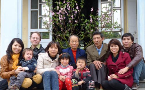 Vợ chồng Bích Yến và con trai (bên trái ảnh) về thăm quê dịp Tết Nguyên đán vừa qua