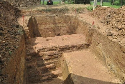 Thành cổ được xây bằng gạch vừa được phát lộ dưới ḷng đất tại Duy Trung, huyện Duy Xuyên.