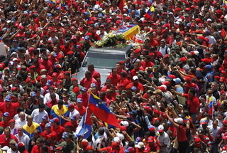 Ngày hôm qua (6/3), cả biển người ủng hộ Tổng thống Venezuela Hugo Chavez đã đổ xuống đường để tham gia rước linh cữu của ông qua các đường phố ở thủ đô Caracas, bắt đầu 7 ngày quốc tang để tưởng nhớ Nhà lãnh đạo kính yêu của họ.