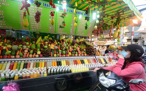 Trong khi đó, trên đường phố, món nước thốt nốt ướp lạnh - đặc sản của An Giang được bày bán trên các xe đẩy xuất hiện khá nhiều, giá khoảng 10.000đ/ly gồm cả nước và cơm thốt nốt. Bên cạnh những món giải khát quen thuộc như: nước mía, rau má, mía lau..., mùa nóng năm nay còn có thêm nhiều sản phẩm “thiên nhiên”: sữa bắp non (giá 9.000 - 10.000đ/chai), nước rong biển (6.000 - 7.000đ/chai), rau má, đậu nành (8.000đ/chai), nước ép củ sen (12.000 - 15.000đ/chai) được bày bán trên đường phố. Bị coi là món “nóng”, nhưng lại thu hút không ít người tiêu dùng trong mùa nóng năm nay là nước sầu riêng ép với giá từ 40.000 - 45.000đ/chai. Sản phẩm mới, được nhiều phụ nữ ưa thích nhờ yếu tố “dưỡng sắc” là nước ép bí non (loại bí xanh dùng để nấu canh) giá 10.000 - 12.000đ/chai, nước nha đam đường phèn 10.000đ/chai…