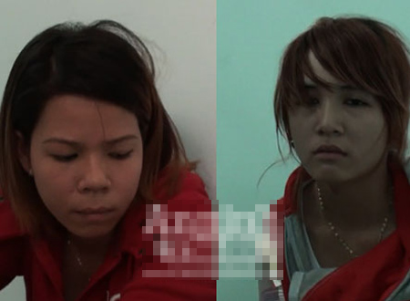 Trần Thị Trinh và Hồ Phạm Lan My tại cơ quan điều tra