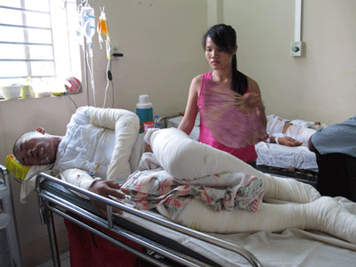 Phỏng nặng vì hút thuốc lúc sửa xe