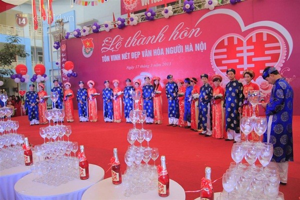 Cận cảnh đám cưới tập thể diễn ra tại trường học ở Hà Nội