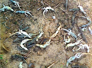 Nổ mìn phá đá, kỳ nhông và rắn mối chết trắng bụng