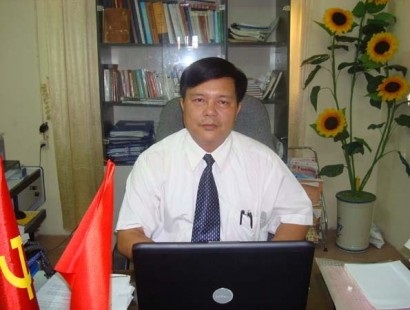 Tiến sĩ Phạm Minh Tuyên trong pḥng làm việc.