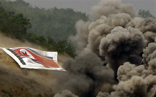 Quốc kỳ Triều Tiên bị đem biến thành mục tiêu trong các cuộc tập trận của Hàn Quốc.