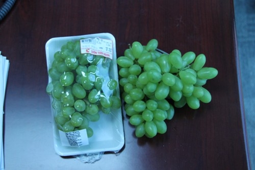 Mang số nho Trung Quốc này về tòa soạn, trộn lẫn với khay nho vừa mua ở Big C, tất cả các phóng viên, biên tập viên của Petrotimes đều không phân biệt được điểm khác nhau của 2 sản phẩm.