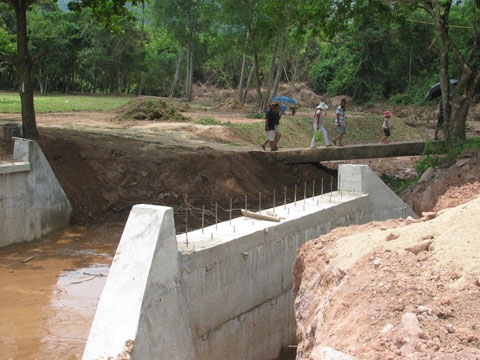 Cầu bắc qua suối Khe Thẻ đang bị bê tông hóa.