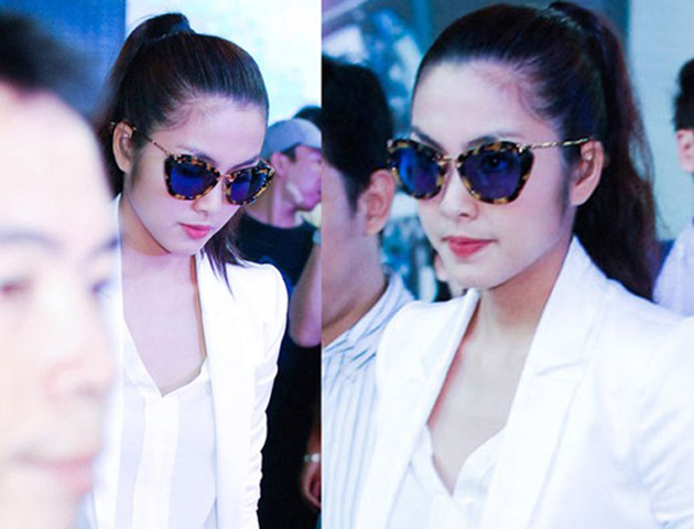 Sau túi thì kính cũng là phụ kiện mà Tăng Thanh Hà có vẻ đầu tư. Trong sự kiện mới đây, cô xuất hiện rất ấn tượng với mẫu kính mắt mèo "cực hot" của Miu Miu. Mẫu kính này được rất nhiều fashionista trên thế giới ưa chuộng. Nó có giá khoảng 216 bảng Anh - khoảng 7 triệu đồng.
