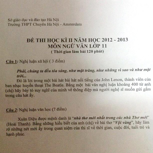 Đề Văn thi học kỳ ở trường Ams gây xôn xao