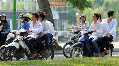 Từ nhiều năm nay, do đời sống nâng cao, nhiều gia đ́nh khá giả đă mua xe máy cho con đi học dù chúng chưa đủ tuổi điều khiển khiến việc học sinh vi vu xe máy tới trường trở thành vấn nạn khó giải.