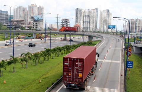 Chiều 13/5, chúng tôi có mặt dưới chân nhánh A của cầu vượt Cát Lái. Dòng xe nối đuôi nhau qua cầu liên tục. Trong số các phương tiện vượt cầu, có rất nhiều xe tải nặng và xe đầu kéo chở container.
