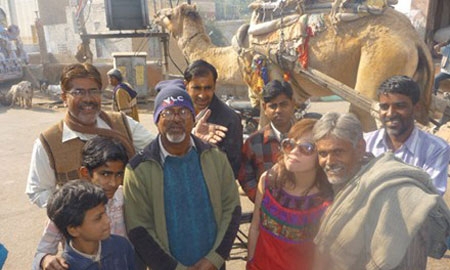 Phương Mai (thứ 3 từ phải sang) với những người dân nghèo Ấn Độ..