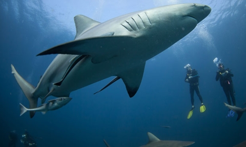 Rùng mình cảnh bị cuốn vào 'cơn lốc' cá mập khổng lồ