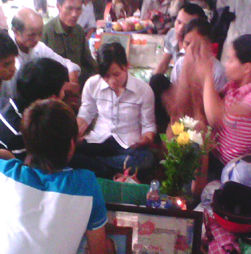 khả năng áp vong của “anh Hồng”. Thời điểm đó, người t́m mộ kéo đến nhà “anh Hồng” chưa đông như bây giờ, mỗi ngày chỉ có vài gia đ́nh với vài chục người. Họ ngồi quây tṛn bên các di vật của liệt sĩ, chủ yếu là giấy báo tử, ảnh, huân huy chương… rồi lầm rầm khấn vái. “Anh Hồng” đi loanh quanh xem xét, nḥm ngó các gia đ́nh. Hễ thấy ai lắc lư, có biểu hiện “ma nhập” th́ anh dừng lại gọi tên liệt sĩ, mời “vong” liệt sĩ về, rồi luôn miệng yêu cầu người nhà khấn vái, gọi liệt sĩ.