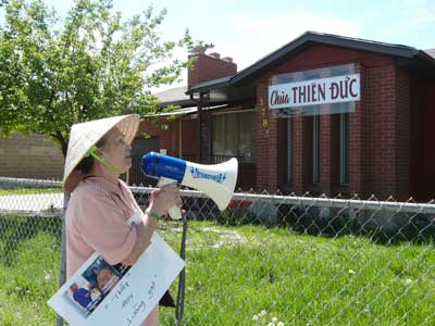 Phật tử tại Utah tiếp tục biểu tình chống “sư” Thích Minh Tín, trụ trì chùa Thiên Ðức tại thành phố West Valley City, tiểu bang Utah vào sáng Chủ Nhật, ngày 12 tháng 5, 2013.