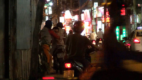 Sau một đêm bán kẹo và bị đánh đập, đến khoảng 2h vợ chồng Linh chở hai đứa bé đến góc đường Nguyễn Kiệm và Quang Trung (Q.Gò Vấp) nhập bọn với ba đứa trẻ khoảng 5-6 tuổi để chuẩn bị về phòng trọ.