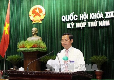 | Tổng Thanh tra Chính phủ Huỳnh Phong Tranh tŕnh bày trước Quốc hội Tờ tŕnh dự án Luật tiếp công dân |