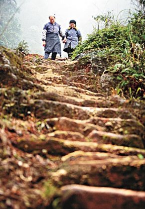 Sang năm thứ hai sau khi chung sống trên núi và trong suốt 50 năm tiếp sau đó, Liu đã đẽo gọt dốc đá thành những bậc thang để cho vợ có thể đi xuống núi thoải mái. Đến năm 2001 có một nhóm khách du lịch tới đây và họ đã vô cùng ngạc nhiên khi phát hiện ra cặp đôi nọ cùng với 6000 bậc thang được đẽo gọt bằng tay.
