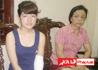 Lúc này ở dưới nhà, nhìn thấy 5 tên lao vào đánh mẹ túi bụi, nữ sinh vội lao vào che đỡ. Trong lúc hỗn loạn, cô bị một nhát chém vào tay. Nhát chém rất mạnh, làm vỡ mạch gân tay, xương khủy tay, khiến sau đó nạn nhân phải điều trị cả tuần trong bệnh viện.