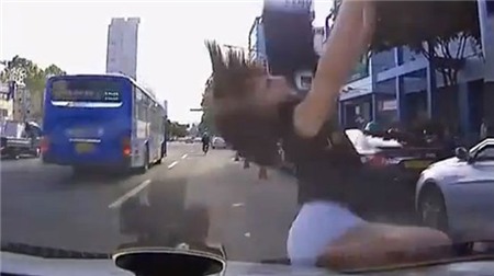 Cô gái bỗng dưng... rơi từ trên trời xuống nắp capô
