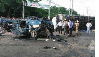 Ô tô 7 chỗ đâm container, tài xế chết thảm