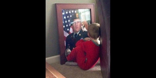 Bức ảnh cậu bé bên chân dung người cha đã khuất gây xúc động