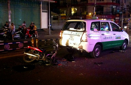 Hai “quái xế“ xăm trổ đầy người đâm sầm vào đuôi taxi nguy kịch
