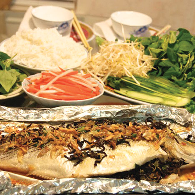Cá nướng cuốn bánh tráng