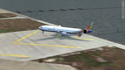 | Hình mô phỏng cú hạ cánh thảm họa của chiếc Boeing 777. Đồ họa: CNN |
