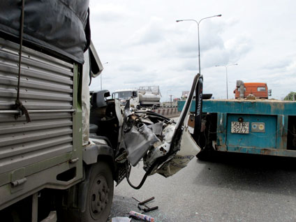 Húc vào container, phụ xe bất tỉnh trong cabin
