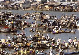 Rời chợ nổi Cái Bè sang chợ nổi Cái Răng (Cần Thơ), lúc tờ mờ sáng, chúng tôi đă thấy không khí buôn bán tấp nập nơi đây. Bé Sáu, chị bán măng cụt, chôm chôm nhăn cho biết, bây giờ chợ vắng nhiều rồi. Những ghe c̣n trụ lại là "vừa bán vừa làm du lịch". "Cách đây chừng năm bảy năm, nh́n chợ bắt ham. Ba giờ sáng là chộn rộn lắm rồi. Bây giờ hơn 4 giờ mới họp chợ, cũng lèo tèo vài thứ thôi. C̣n chợ nổi chính gốc, đi vui lắm", chị bé Sáu kể.