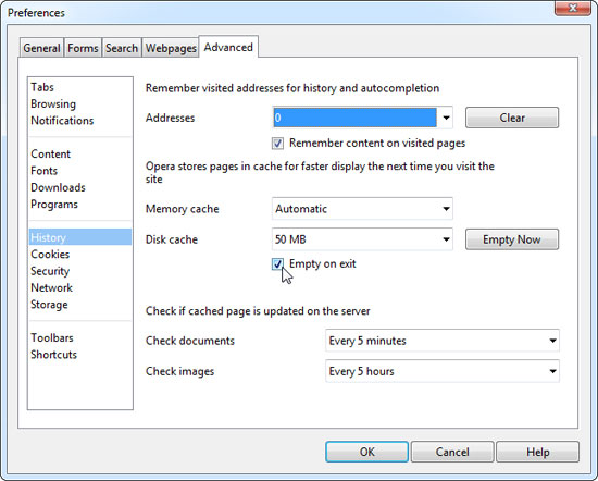 Tự động xóa dữ liệu riêng tư khi đóng trình duyệt