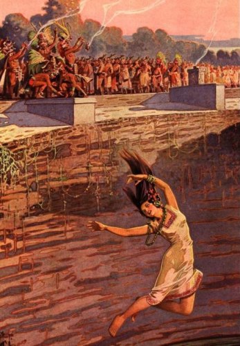 Theo các văn bản cổ đại của người Maya ghi lại, thời tiết hạn hán là do thủy thần nổi giận. Để vị thần trở nên vui vẻ, họ đưa vào giếng một cô gái đồng trinh 14 tuổi. Người xưa quan niệm rằng, cô gái khi được vứt vào giếng sẽ trở thành người hầu của thủy thần, được ăn ngon mặc đẹp và tận hưởng cuộc sống an nhàn.