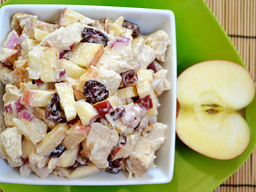 Món ăn này là sự kết hợp giữa gà với những quả táo giòn và nho tươi cực kì ngon miệng. Nhưng món salad này không chỉ thơm ngon, nó còn bao gồm cả các chất dinh dưỡng và khoáng chất giúp ngăn ngừa mụn trứng cá.